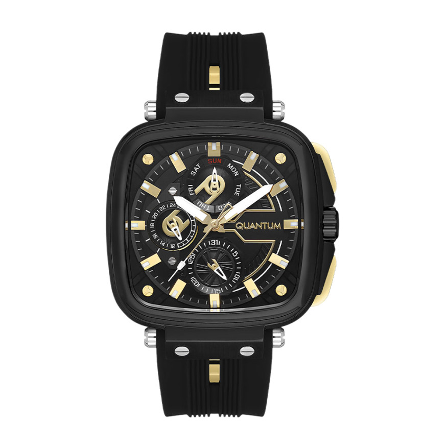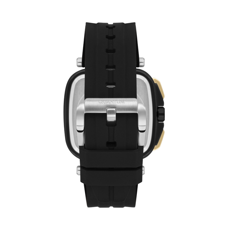 Мъжки часовник Quantum с корпус от неръждаема стомана и силиконова каишка. Моделът е с мултифункционален дисплей и стъкло минерал-кристал. Задвижва се от кварцов механизъм. Водоустойчивост 10 ATM - позволява мокрене, къпане и плуване във водни басейни.