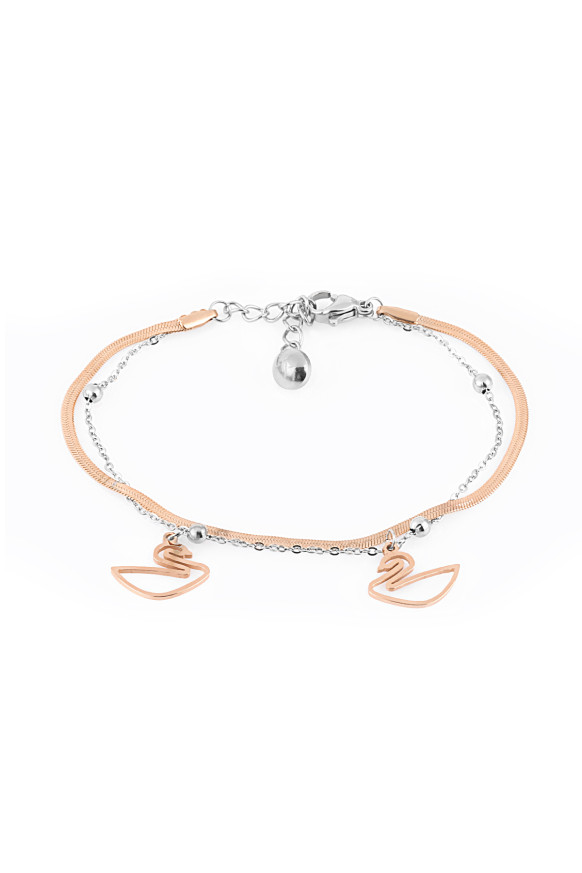 Нежна двуредова гривна Daniel Klein, изработена от неръждаема стомана. Моделът е с висящи декоративни елементи във формата на лебед и малки топчета по дължината на едната верижката.