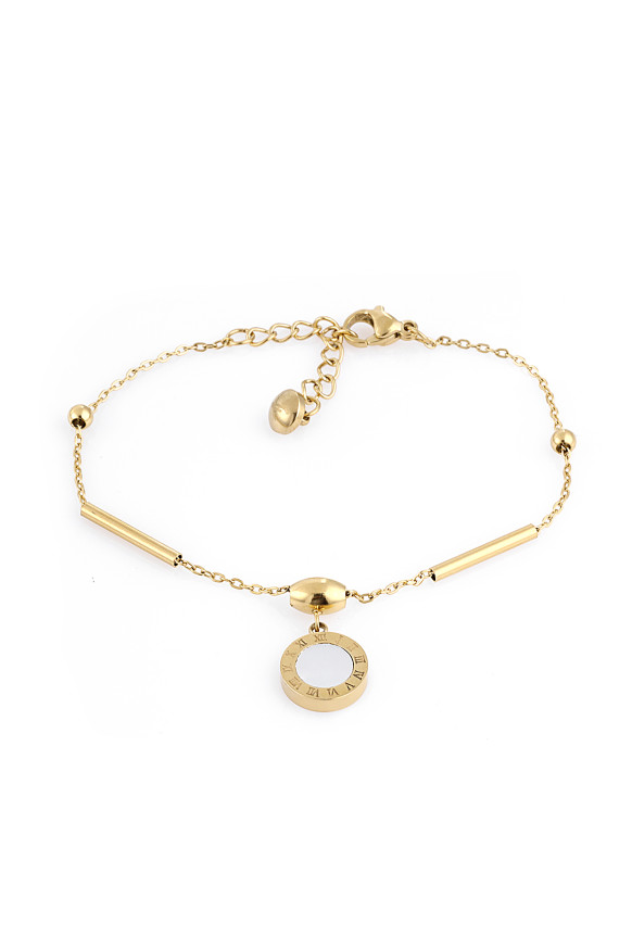 Дамска гривна Daniel Klein от неръждаема стомана в цвят злато. Моделът е с висящ декоративен елемент с нежен седеф.