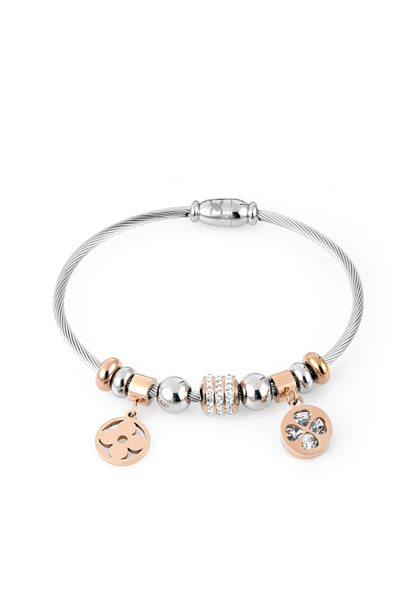 Нежна дамска гривна Daniel Klein изработена от неръждаема стомана. Моделът е със стилни детайли и висулки, допълнени от кристали.
