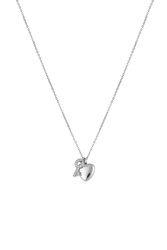 Нежно дамско колие Daniel Klein, изработено от неръждаема стомана. Моделът е с декоративен елемент сърце и ключе с инкрустация от кристали.