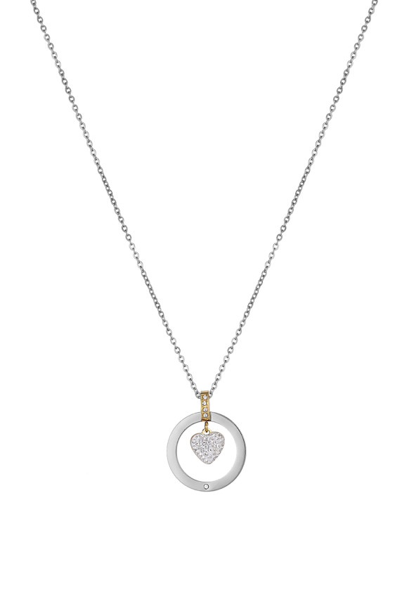Нежно дамско колие Daniel Klein с красив дизайн. Изработено от неръждаема стомана. Моделът е с висулка с декоративен елемент във формата на сърце с инкрустирани кристали.