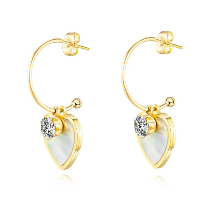 Нежни дамски обеци Lee Cooper с декорация от кристал и седеф. Моделът е изработен от неръждаема стомана.