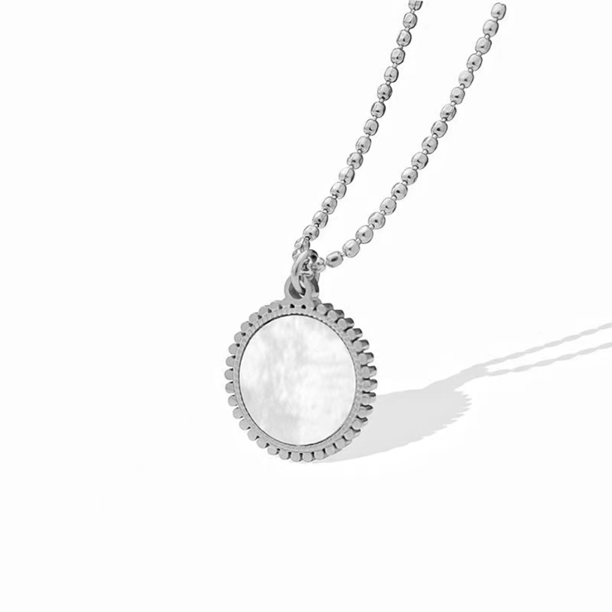 Красиво дамско колие Lee Cooper с елегантен дизайн и декоративен елемент кръгла плочка със седеф. Моделът е изработен от неръждаема стомана.