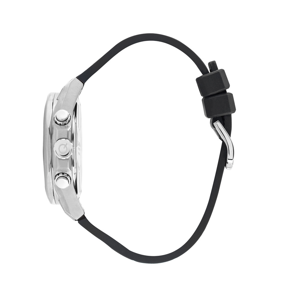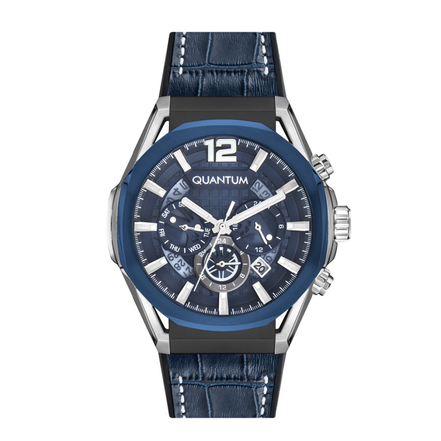 Спортно-елегантен мъжки часовник Quantum с мултифункционален дисплей. Стъкло минерал-кристал с антирефлексно покритие. Корпус от неръждаема стомана съчетан със силиконова каишка. Кварцов механизъм. Водоустойчивост 10 ATM - позволява мокрене, къпане и плуване във водни басейни.
