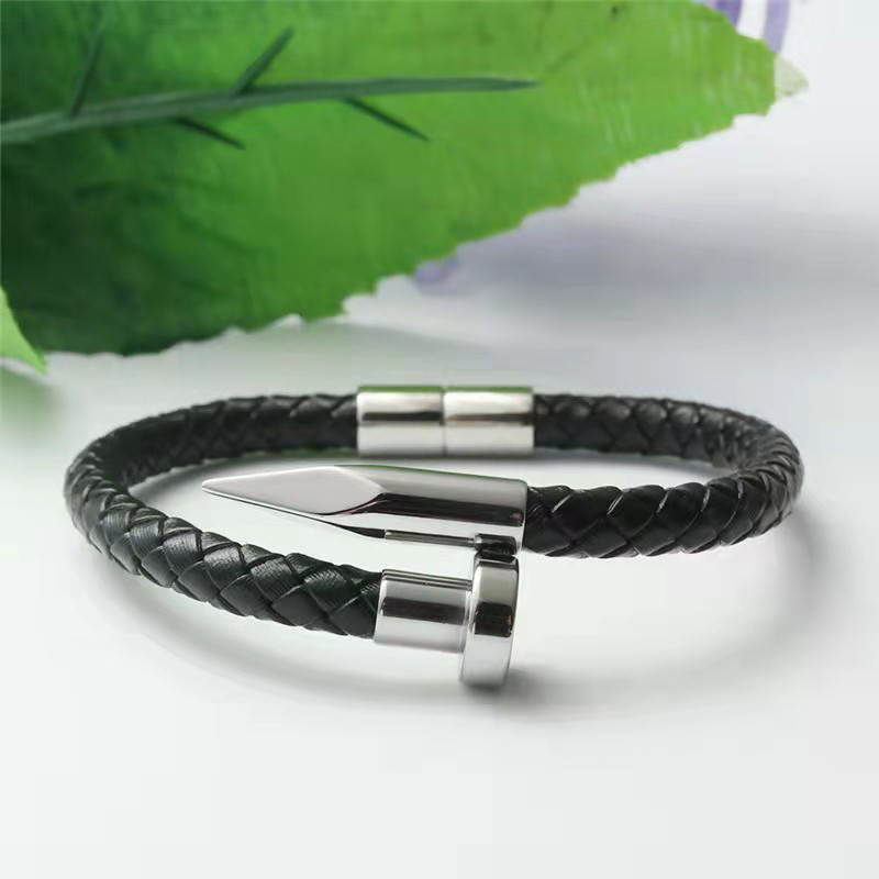 Мъжка гривна Lee Cooper с модерен дизайн, изработена от естествена кожа със сребристи елементи от неръждаема стомана.