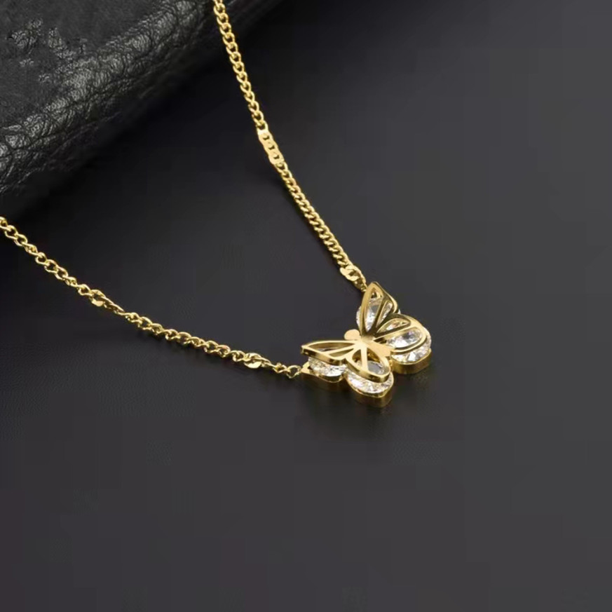 Нежно дамско колие Lee Cooper с красива висулка във формата на пеперуда с декорация от кристали. Моделът е изработен от неръждаема стомана.