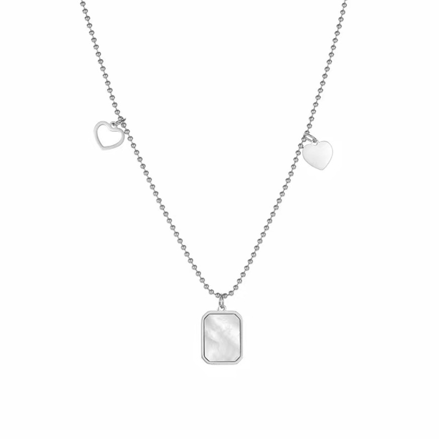 Нежно дамско колие Lee Cooper със стилен дизайн, изработено от неръждаема стомана. Моделът е с декоративни елементи сърце и висулка със седеф. Дължина на колието 40 см + 5 см.