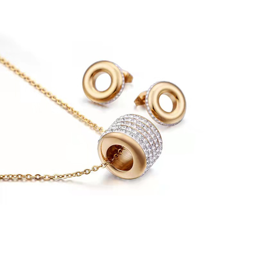 Стилен дамски комплект Lee Cooper с нежен и красив дизайн. Комплектът включва колие и обеци, изработени от неръждаема стомана с инкрустирани кристали.