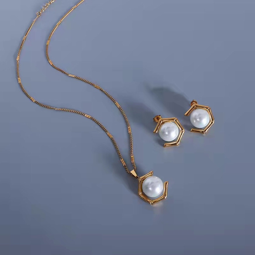 Стилен комплект бижута Lee Cooper с нежен дизайн. Комплектът включва колие и обеци, изработени от неръждаема стомана с мъниста наподобяващи перла.