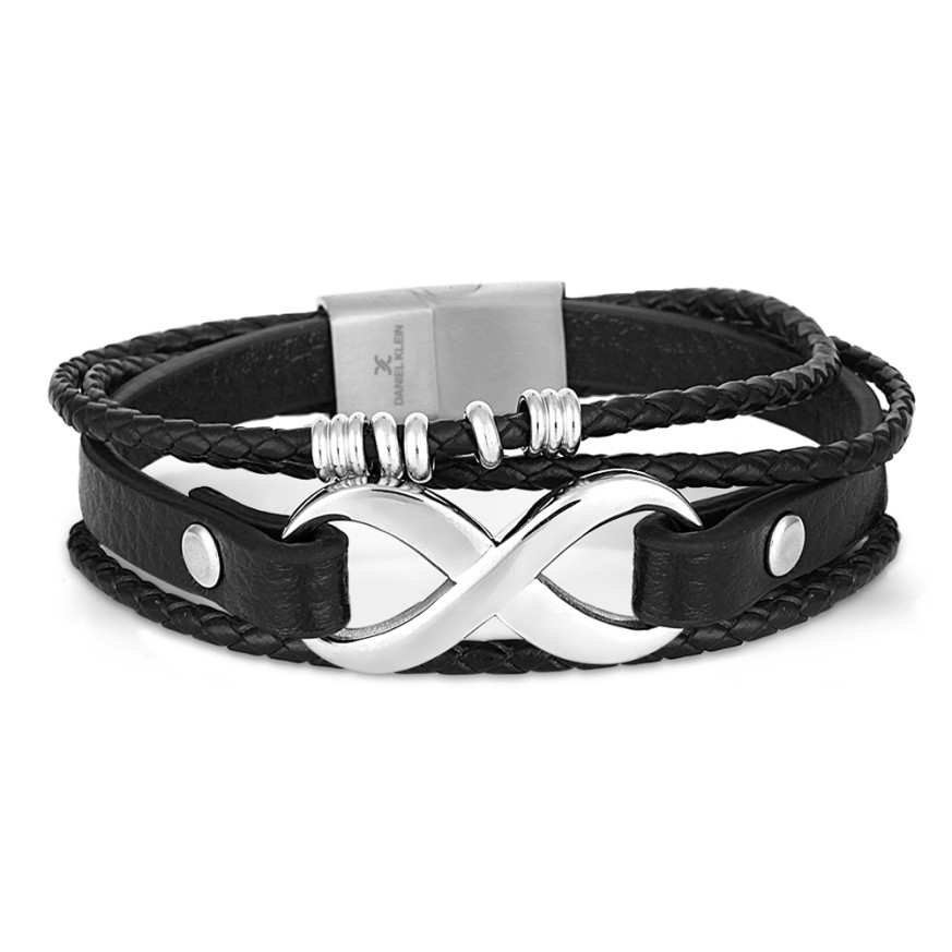 Мъжка гривна Daniel Klein, изработена  от естествена кожа с декоративен елемент безкрайност от неръждаема стомана.