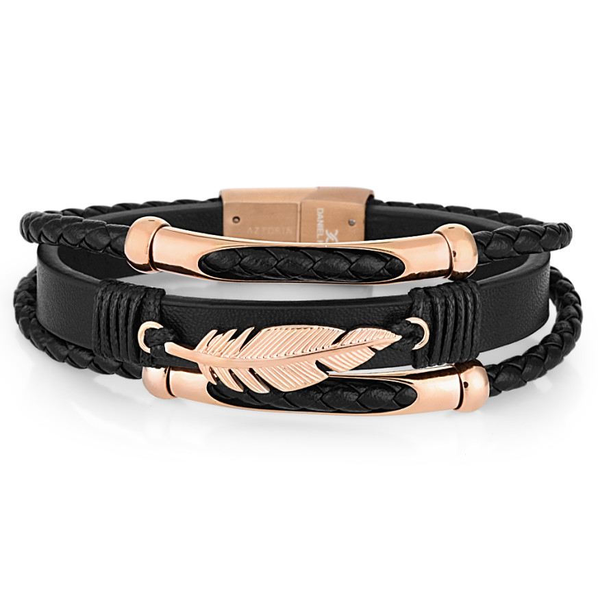 Мъжка гривна Daniel Klein, изработена  от естествена кожа в черен цвят с декоративни елементи от неръждаема стомана в цвят розово злато.