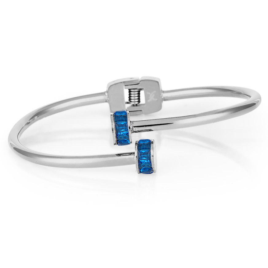 Елегантна дамска гривна от неръждаема стомана с декорация от сини кристали.