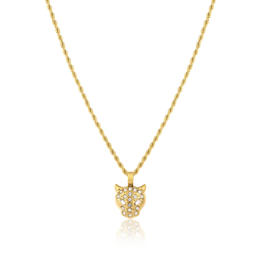 Дамско колие Daniel Klein с модерен дизайн, изработено от неръждаема стомана. Моделът е с висулка във формата на котешка глава с инкрустирани кристали.