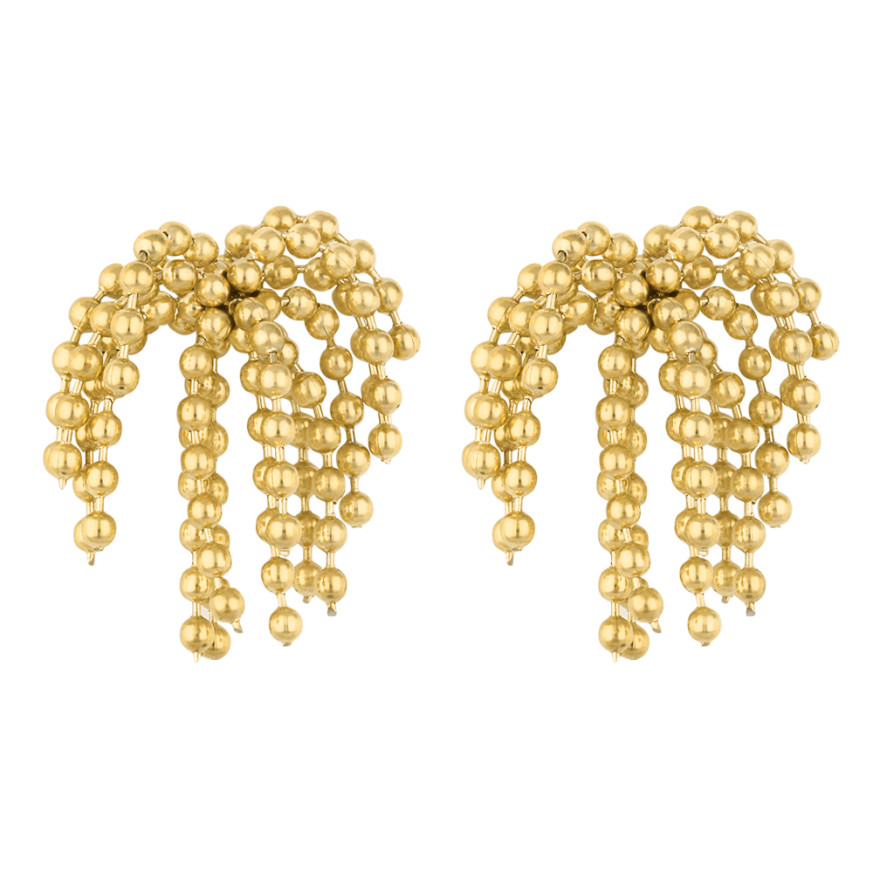 Дамски обеци с интересен дизайн във формата на водопад. Моделът е изработен от неръждаема стомана и е със закопчаване на винт.