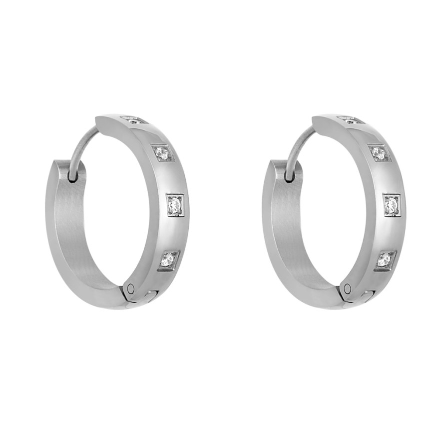 Дамски обеци, изработени от неръждаема стомана с декорация от нежни кристали.