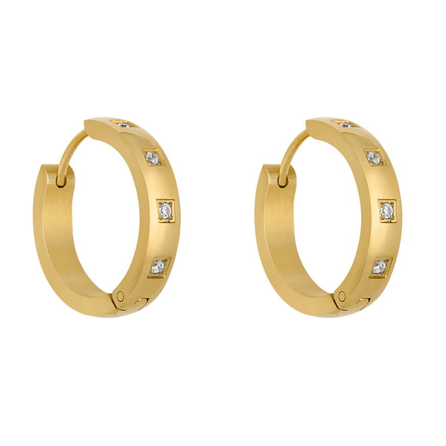 Дамски обеци, изработени от неръждаема стомана с декорация от нежни кристали.