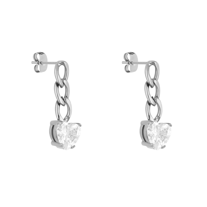 Нежни дамски обеци с декоративен елемент кристално сърце.