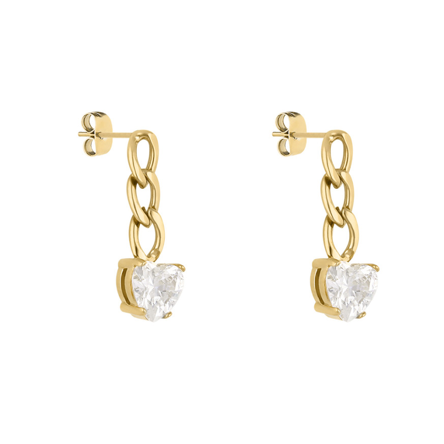 Нежни дамски обеци с декоративен елемент кристално сърце.