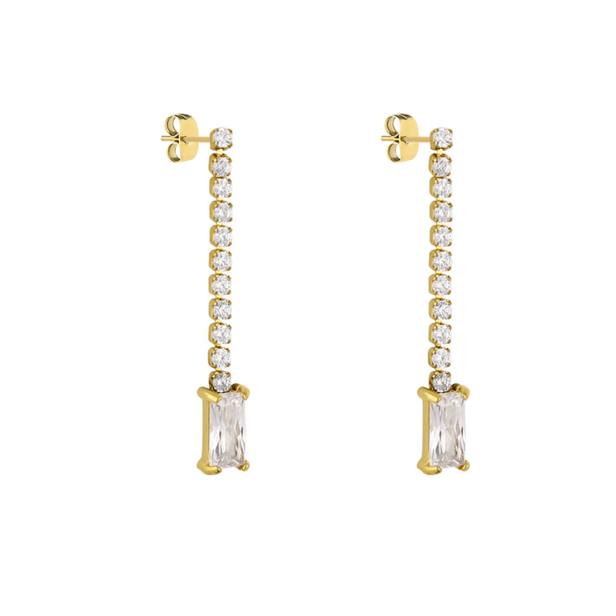 Висящи дамски обеци с декорация отт бляскави кристали, изработени от неръждаема стомана.