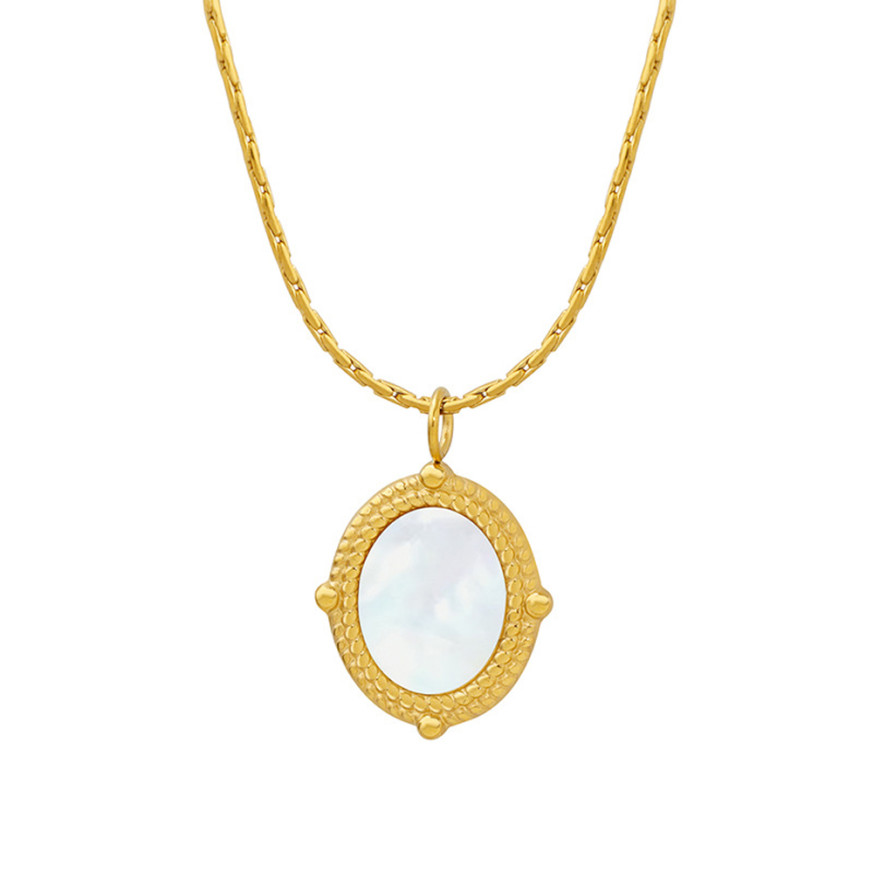 Елегантно дамско колие Lee Cooper с красив и нежен дизайн. Моделът е изработен от неръждаема стомана и е декорарин с висулка със седеф.