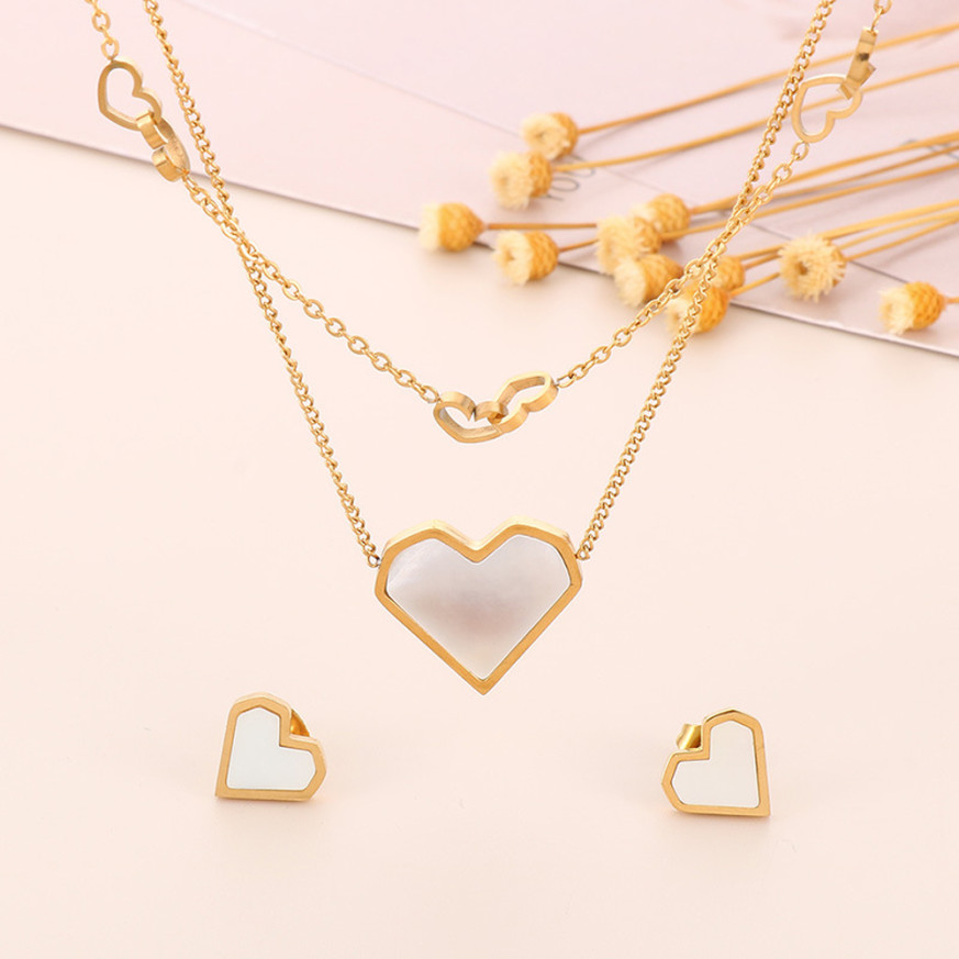 Дамски комплект включващ колие и обеци Lee Cooper с красив дизайн. Моделът е изработен от неръждаема стомана с декоративни елементи във формата на сърце и нежен седеф.