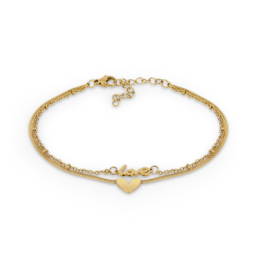 Нежна дамска гривна Daniel Klein с двойна верижка, изработена от неръждаема стомана с декоративен елемент сърце и надпис "Love".