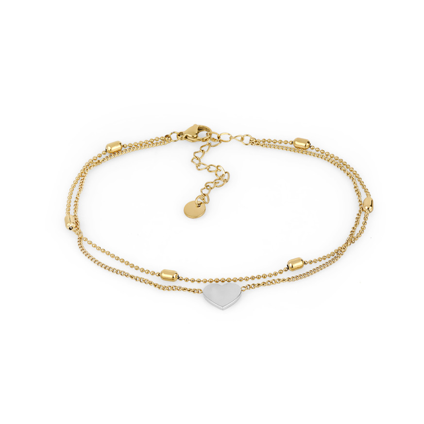 Нежна дамска гривна Daniel Klein с двойна верижка, изработена от неръждаема стомана с декоративен елемент сърце.