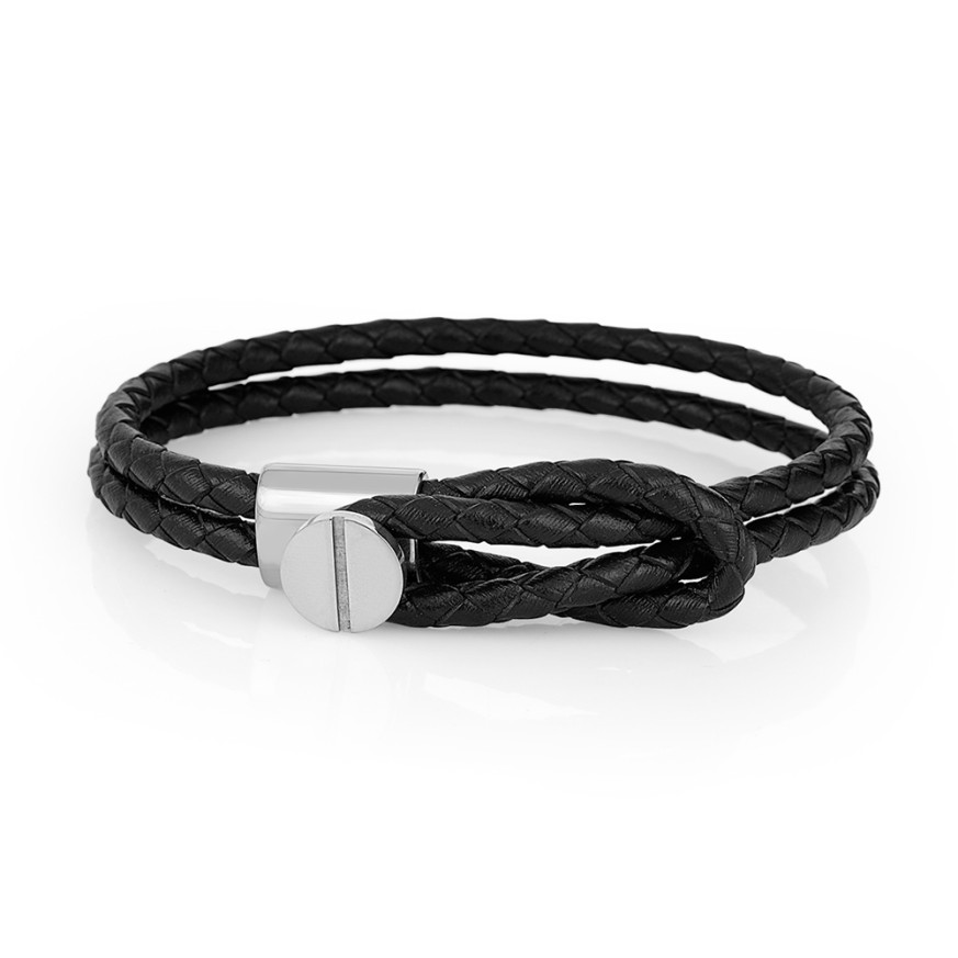 Модерна мъжка гривна Daniel Klein с отличителен дизайн, изработена от естествена кожа в черен цвят с детайли от неръждаема стомана.