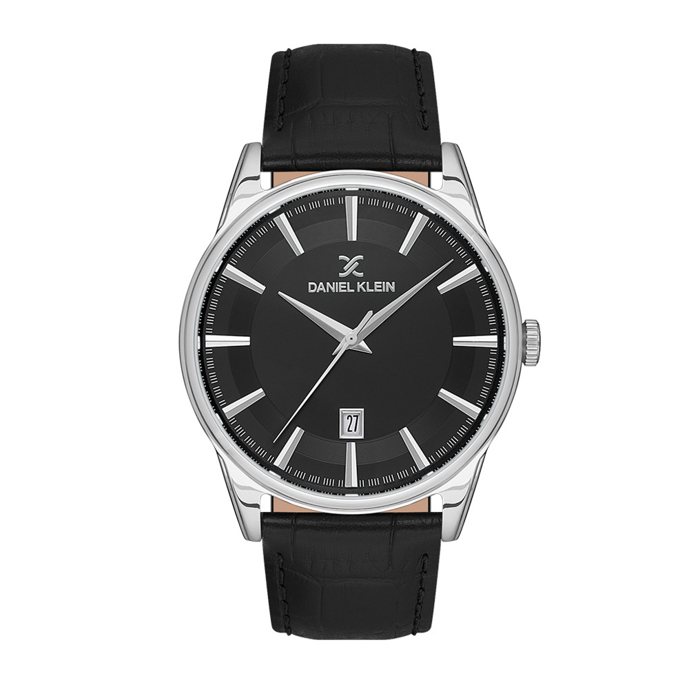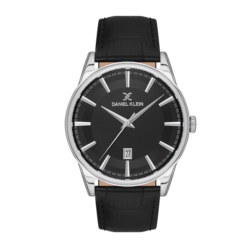 Мъжки часовник Daniel Klein с изчистен дизайн от колекцията Premium. Метален корпус в комбинация с каишка от естествена кожа. Черен аналогов дисплей с показател за дата. Стъкло минерал-кристал. Задвижва се от кварцов механизъм. Водоустойчивост 5 ATM - допускат се леки пръски и взимане на душ, не се препоръчва обилно мокрене.