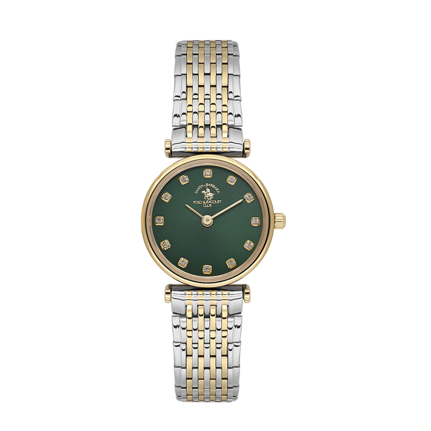 Дамски часовник от колекция Unique с изискан и модерен дизайн. Корпус и верижка от неръждаема стомана, зелен аналогов дисплей с кристали по часовите маркери. Минерал-кристално стъкло, кварцов механизъм, диаметър 24 мм и водоустойчивост 3 ATM.