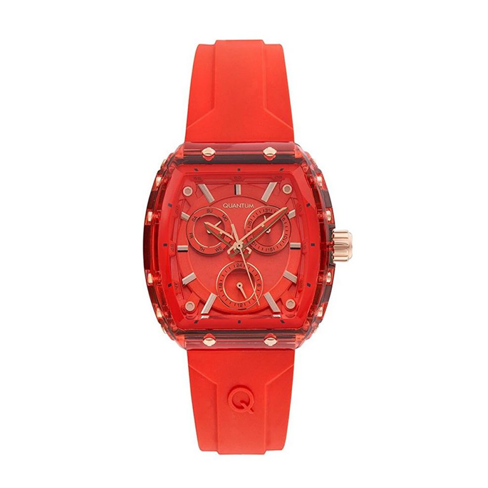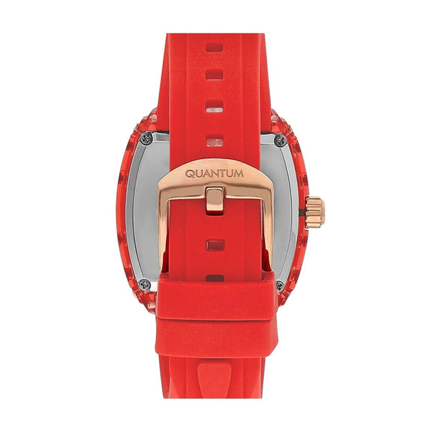 Дамски часовник Quantum с модерна спортна визия. Мултифункционален дисплей с показатели за дата, ден от седмицата и 24-часов формат. Стъкло минерал-кристал. Моделът е с корпус от полимер и силиконова каишка. Часовникът се задвижва от кварцов механизъм. Водоустойчивост 5 ATM - допускат се леки пръски и взимане на душ, не се препоръчва обилно мокрене.