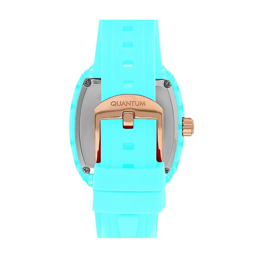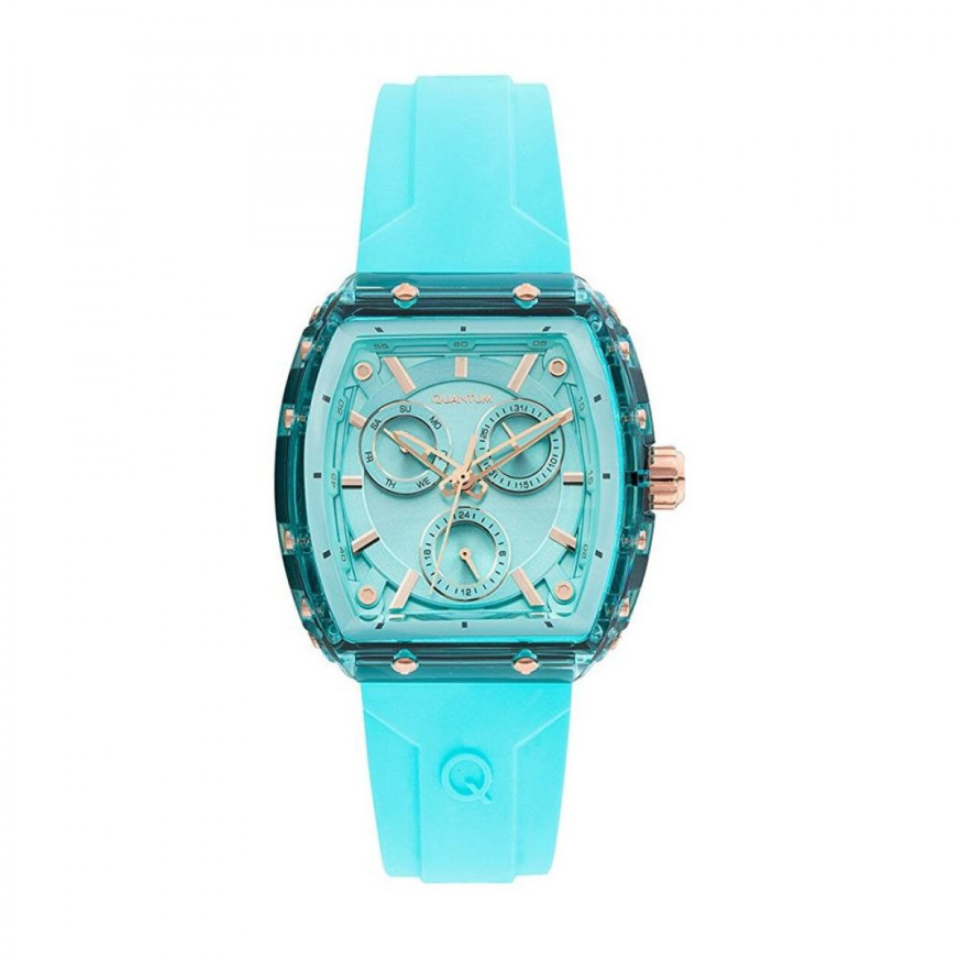 Дамски часовник Quantum с модерна спортна визия в прекрасен син цвят. Мултифункционален дисплей с показатели за дата, ден от седмицата и 24-часов формат. Стъкло минерал-кристал. Моделът е с корпус от полимер и силиконова каишка. Часовникът се задвижва от кварцов механизъм. Водоустойчивост 5 ATM - допускат се леки пръски и взимане на душ, не се препоръчва обилно мокрене.