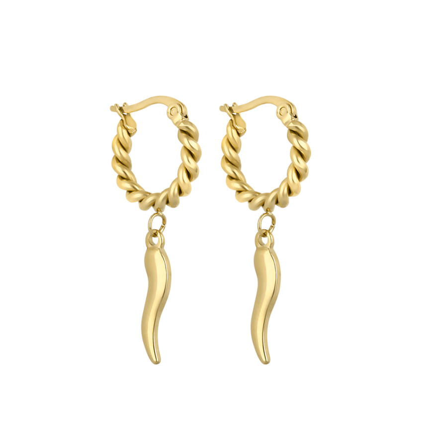 Висящи дамски обеци с интересен и модерен дизайн. Моделът е изработен от неръждаема стомана.