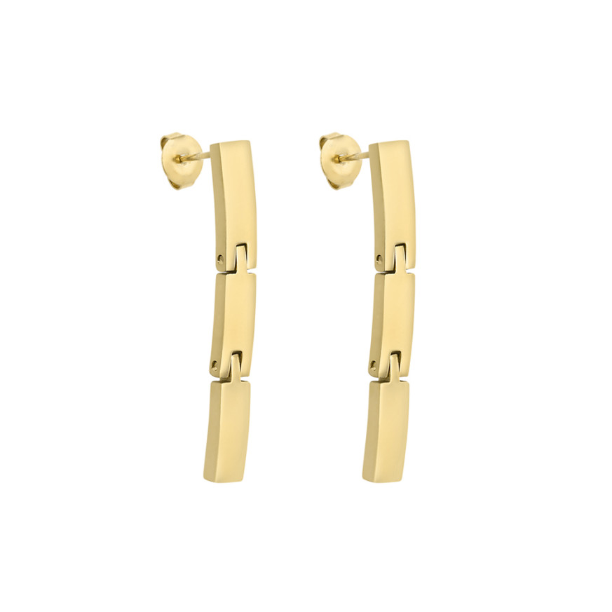 Красиви дамски обеци с разчупен дизайн. Моделът е изработен от неръждаема стомана.