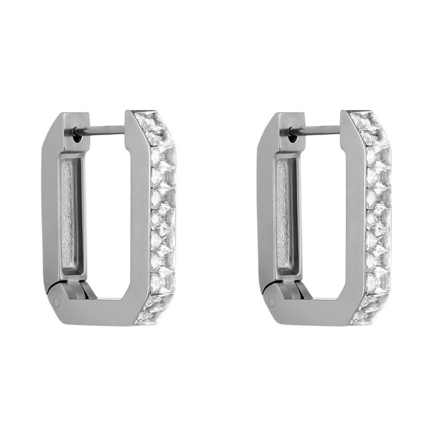 Дамски обеци изработени от неръждаема стомана с декорация от нежни кристали.