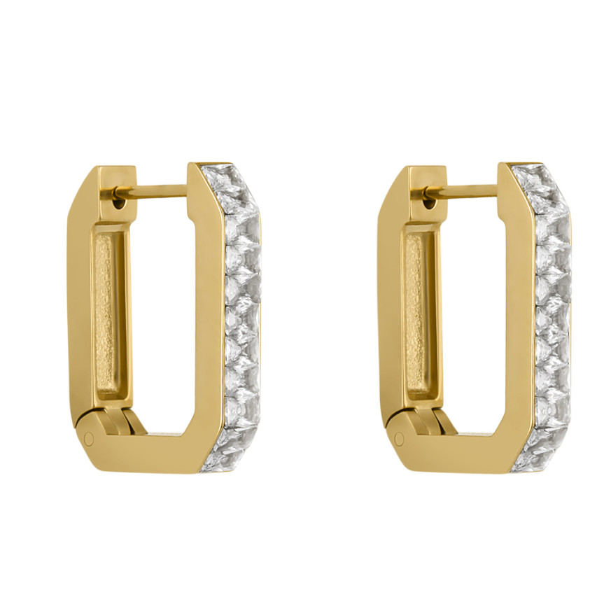 Дамски обеци изработени от неръждаема стомана с декорация от нежни кристали.