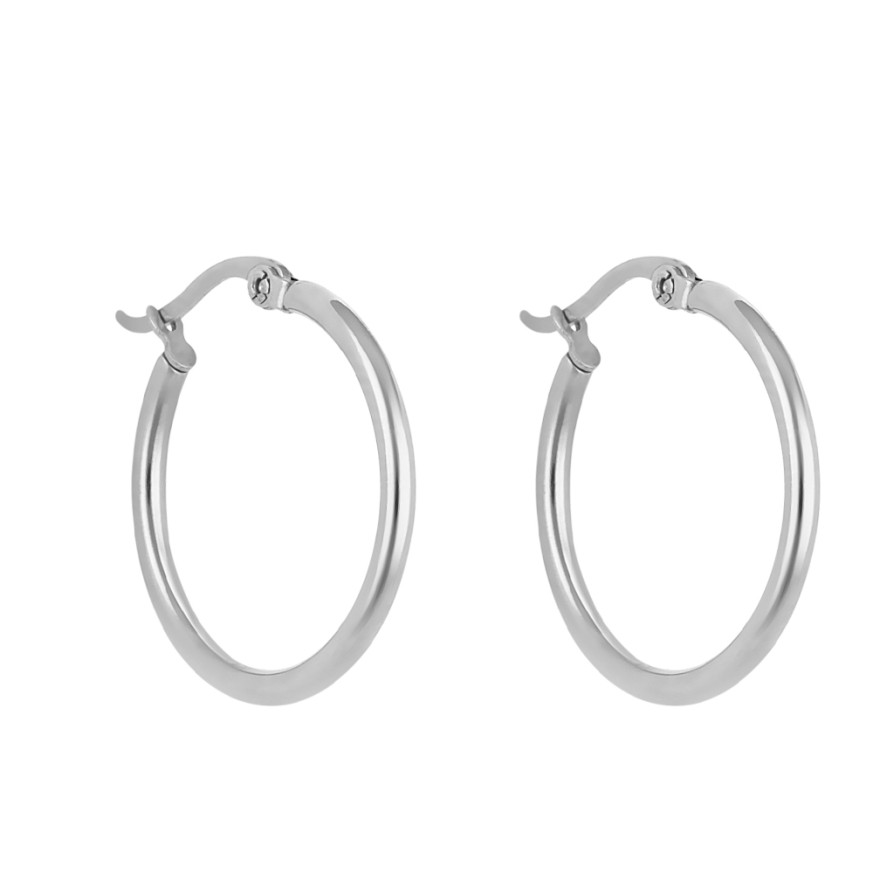 Класически модел дамски обеци тип халки,изработени от неръждаема стомана.
