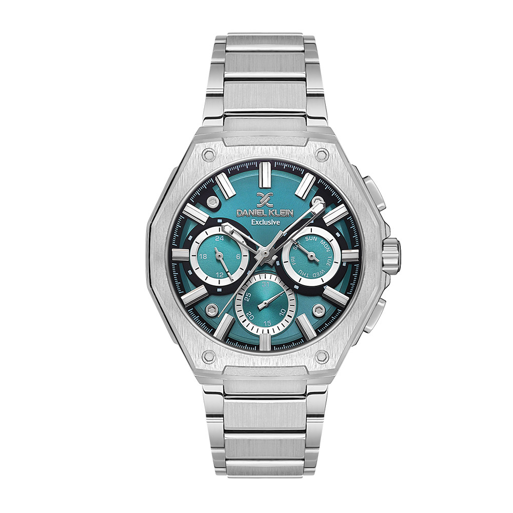 Спортно-елегантен мъжки часовник Daniel Klein с мултифункционален дисплей от колекцията Exclusive. Стъкло минерал-кристал. Моделът е с метален корпус и верижка от неръждаема стомана. Задвижва се от кварцов механизъм. Водоустойчивост 5 ATM - допускат се леки пръски и взимане на душ, не се препоръчва обилно мокрене.