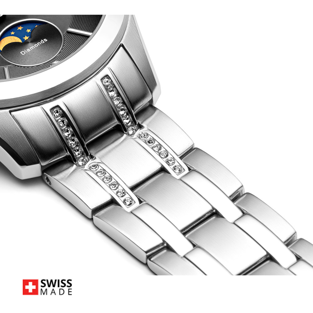 Циферблат Тъмносив, 3 диаманта, Дата, Ден, Лунна фаза