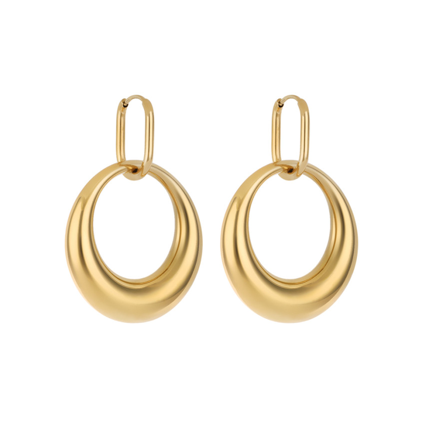 Стилни дамски обеци със семпъл дизайн, изработени от неръждаема стомана.