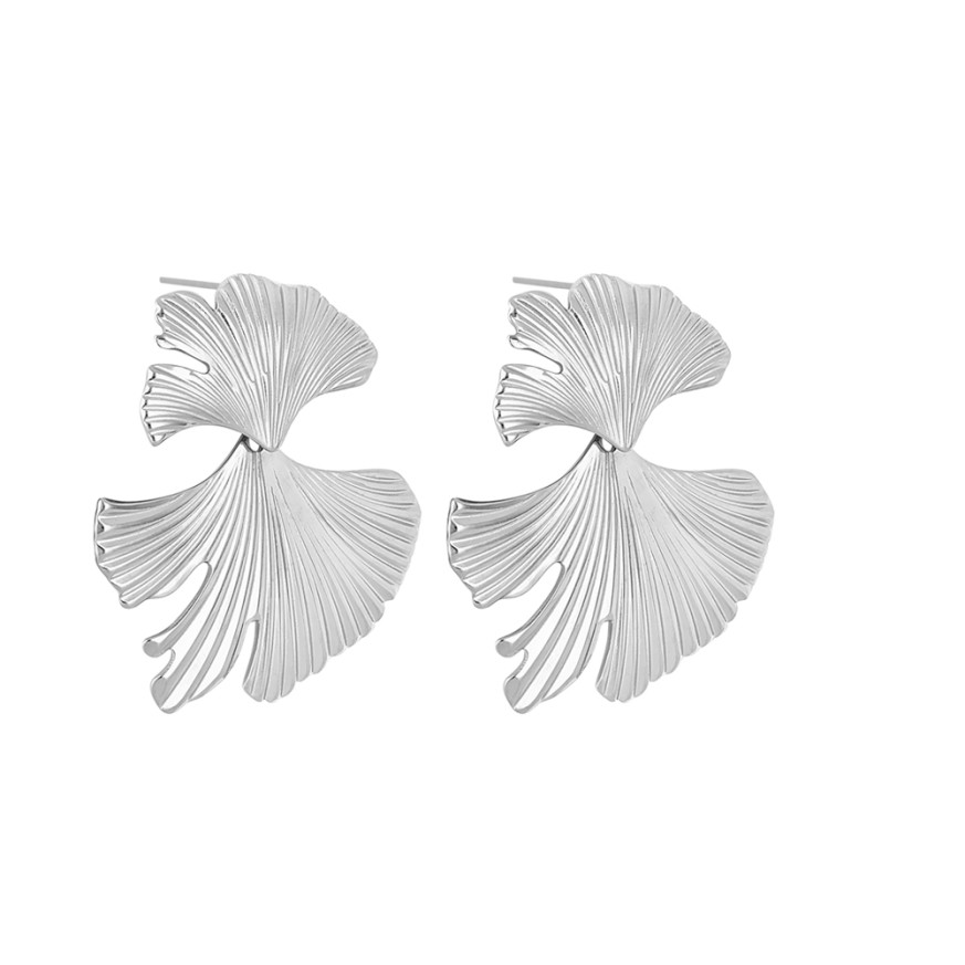 Стилни дамски обеци с отличителен дизайн, изработени от неръждаема стомана.