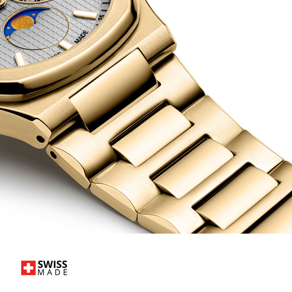 Циферблат Сив с мултифункционални индикатори (дата, ден, лунна фаза)