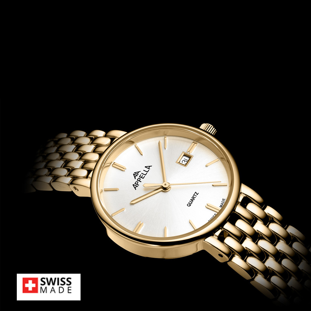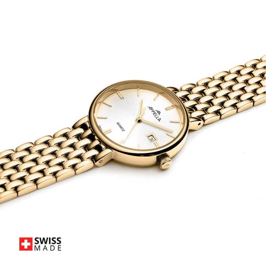 Часовник Appella L32007.1113Q – елегантен дамски модел, който съчетава швейцарска прецизност и изискан стил. Корпусът и верижката от благородна стомана придават луксозно излъчване, а сребристият циферблат с индикатор за дата допълва класическата визия. Сапфир-кристалът осигурява защита от надраскване, докато кварцовият механизъм RONDA 785 Swiss Made гарантира надеждна точност. Подходящ за ежедневно носене и специални поводи, Appella L32007.1113Q е символ на елегантност и качество.