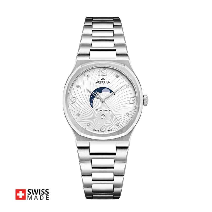 Часовник Appella L32006.5173DQS – Дамски швейцарски кварцов часовник с лунна фаза и диаманти