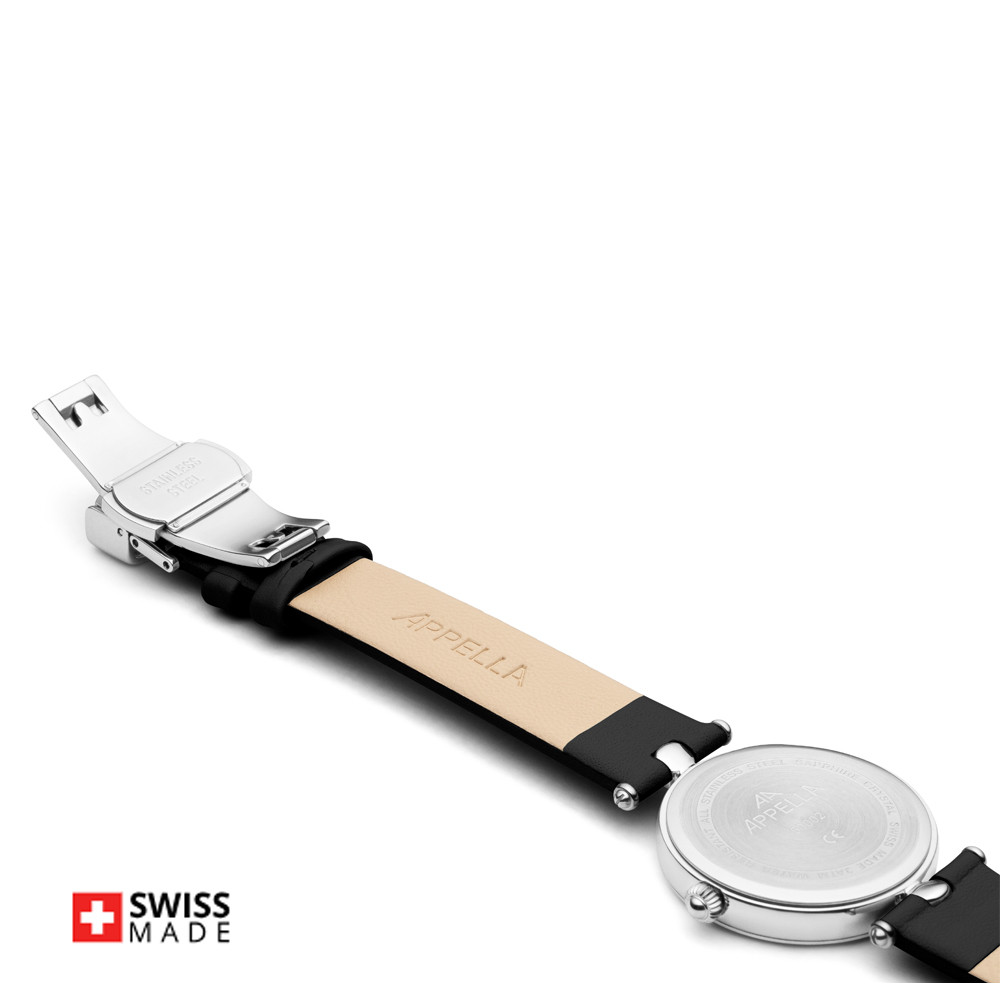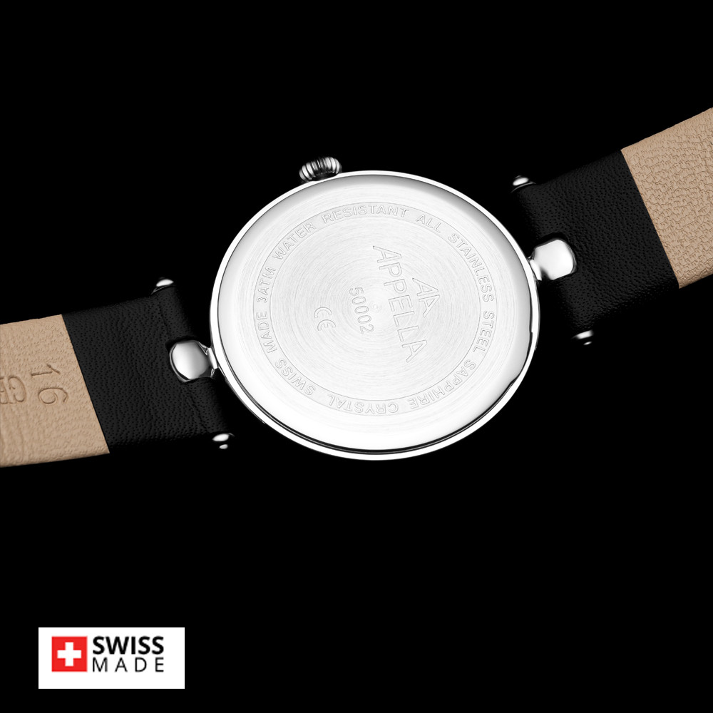 Часовник Appella L50002.5247DQ – Дамски швейцарски часовник с диаманти и кожена каишка