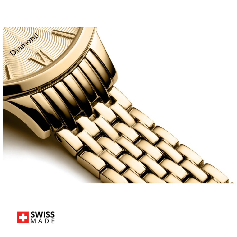 Часовник Appella L50012.1161DQ – Дамски швейцарски часовник с диамант и златист циферблат