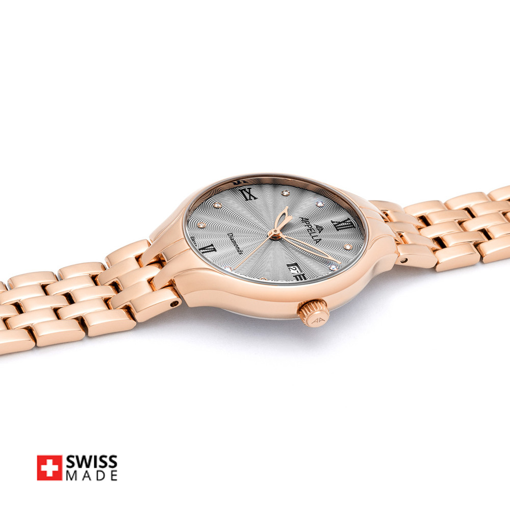 Часовник Appella L50000.9187DQ – Дамски швейцарски часовник с диаманти и розово-златна верижка