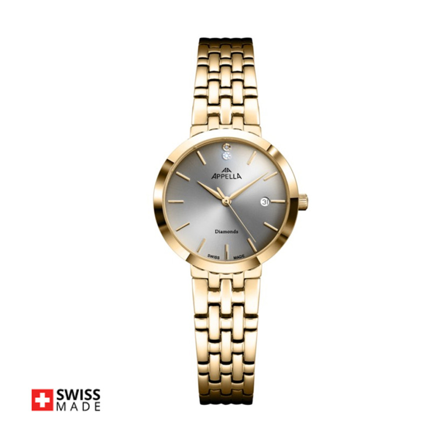 Часовник Appella L50031.1117DQ – Дамски швейцарски модел с диаманти и позлатена верижка