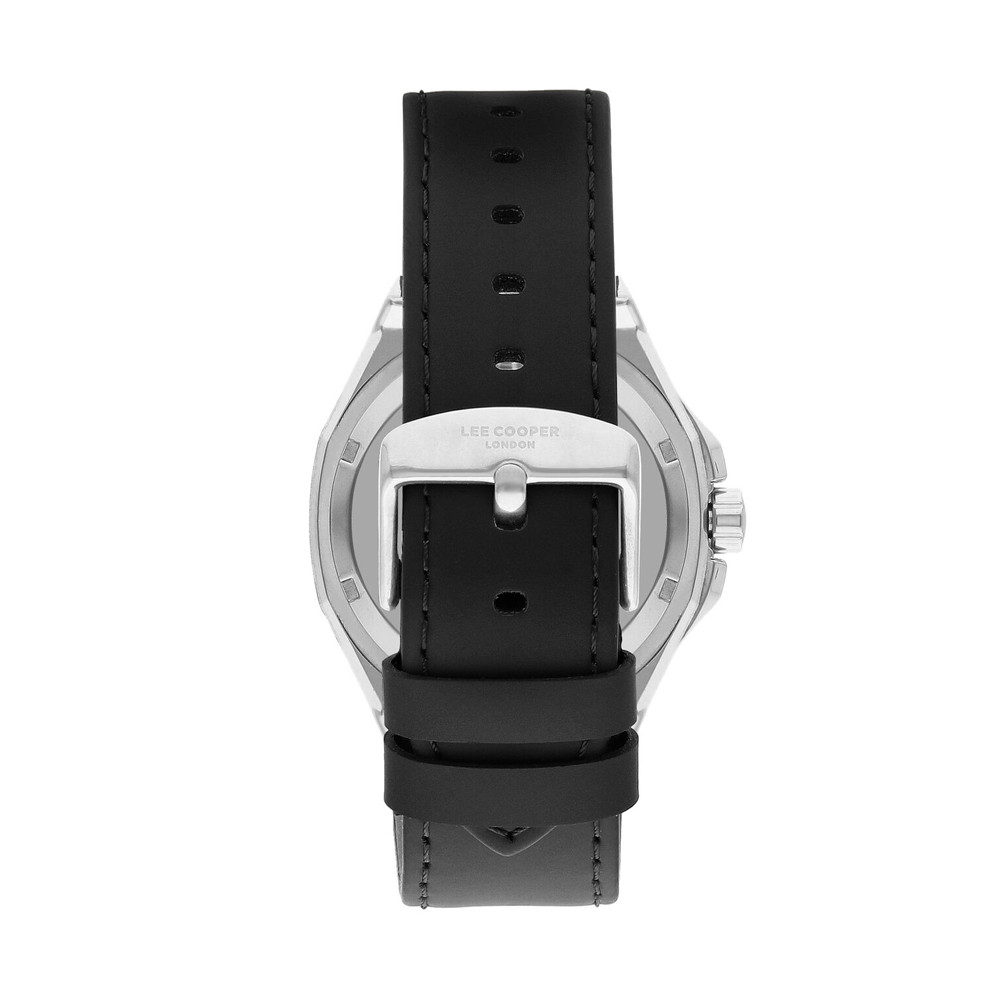 Мъжки часовник Lee Cooper с модерен впечатляващ дизайн. Моделът е с дисплей тип скелетен, през който може да се наблюдава автоматичния механизъм калибър PT2681ZA. Стъклото е минерал-кристал. Корпусът е изработен от супер метал и е в комбинация с каишка от естествена кожа. Диаметър на корпуса 43 мм. Водоустойчивост 5 ATM - допускат се леки пръски и взимане на душ, не се препоръчва обилно мокрене.